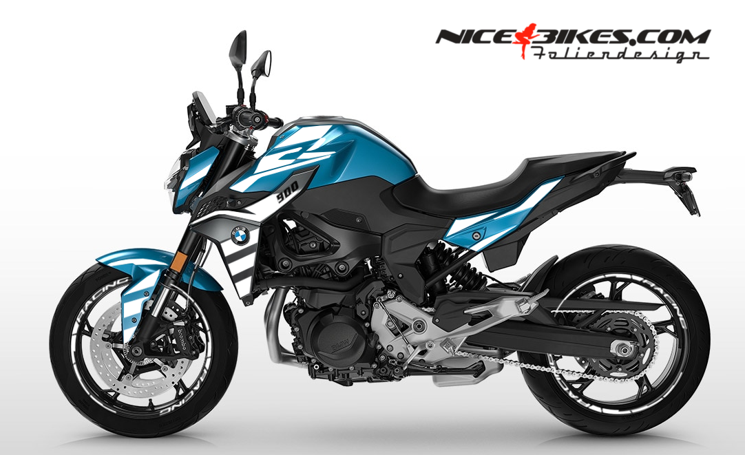 BMW F900R Racing White auf blauer Maschine