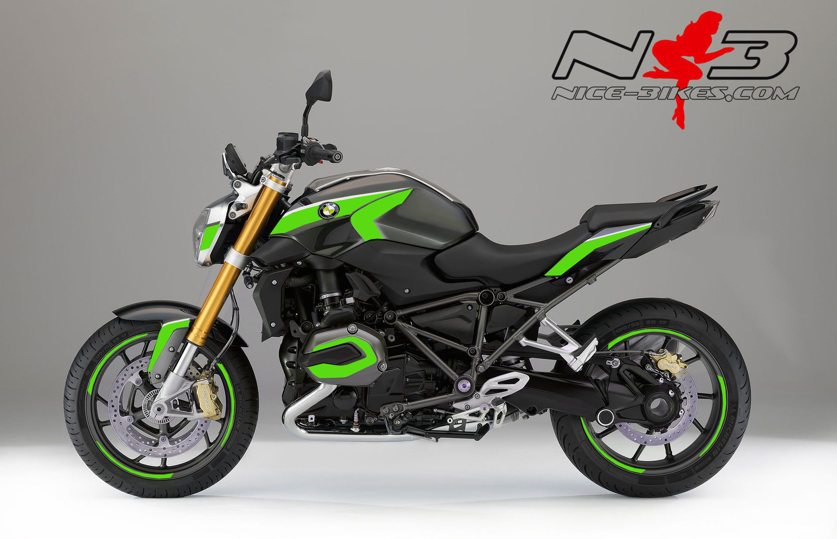 BMW R1200R Edition limegreen auf grauer Maschine