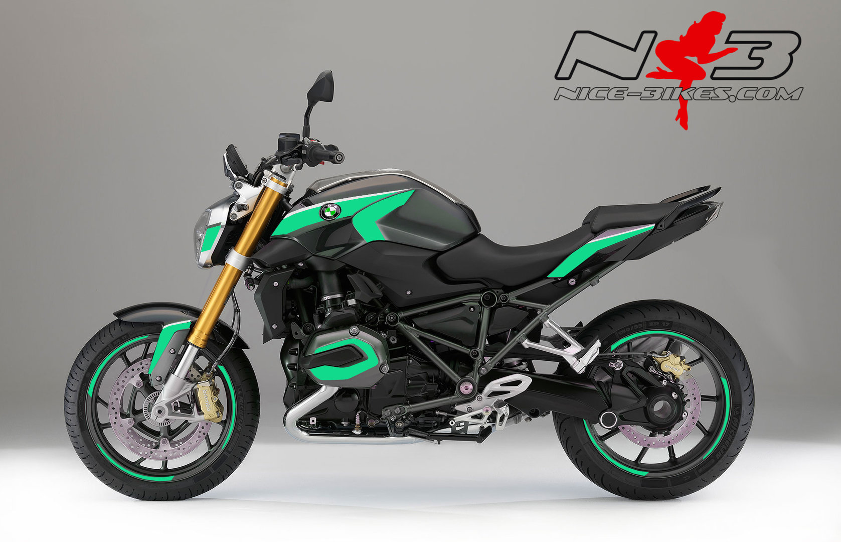 BMW R1200R Edition mint auf grauer Maschine