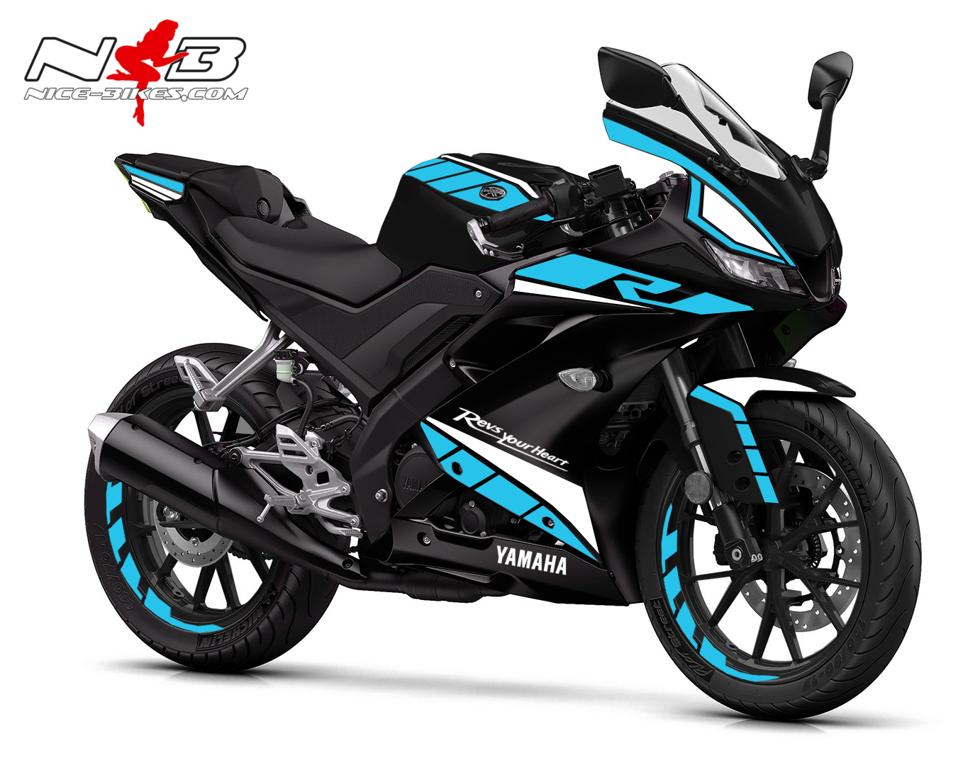 Foliendekor R125 2019-21 Race hellblau auf schwarzer Maschine