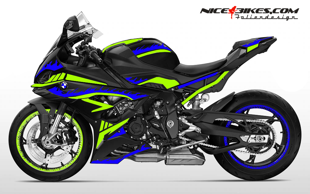 Foliendesign BMW S1000RR (Bj. 2023-24) Inferno Racing Blue/Limegreen