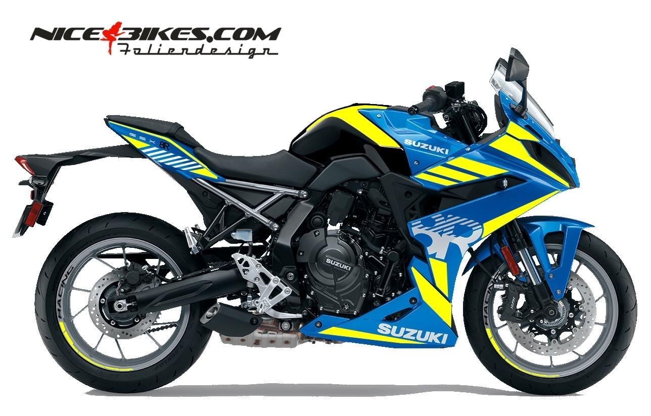 Foliendesign Suzuki GSX-8R Noen Yellow auf blauer Maschine