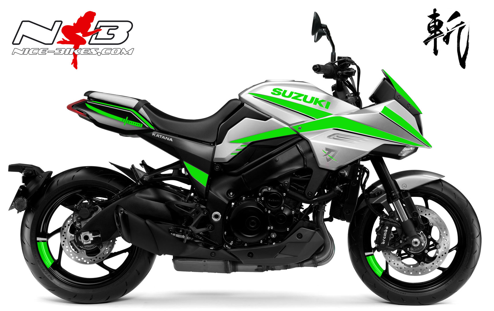 Katana limegreen auf silberner Maschine