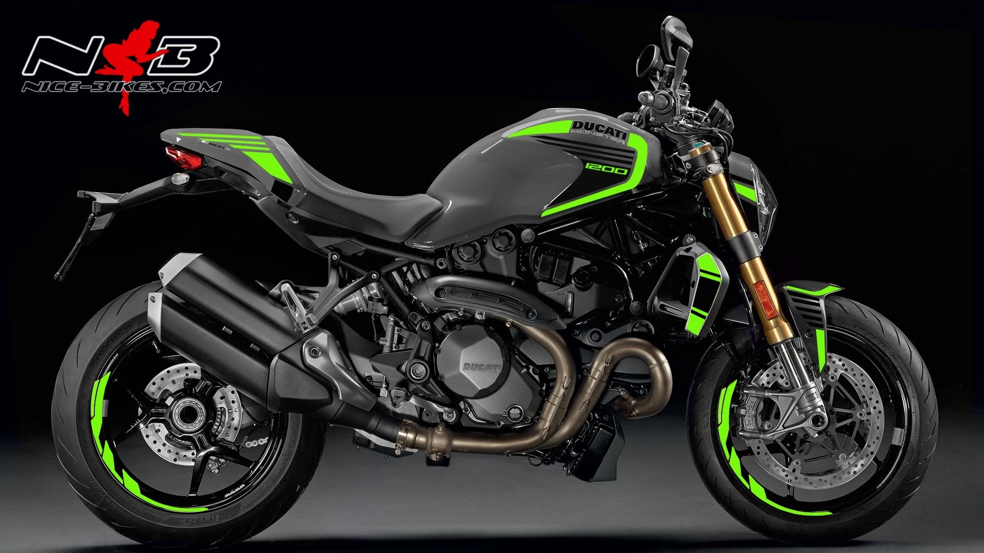 Monster 1200 limegreen auf grauer Maschine