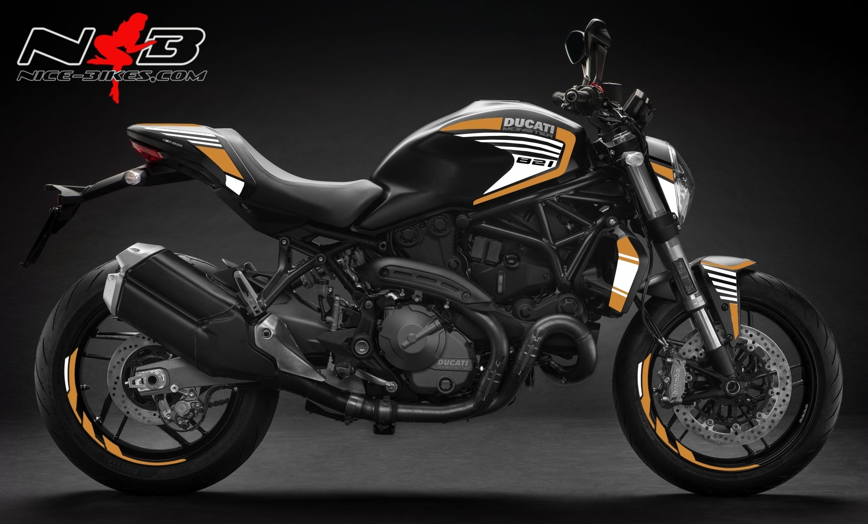 Monster 821 gold auf schwarzer Maschine