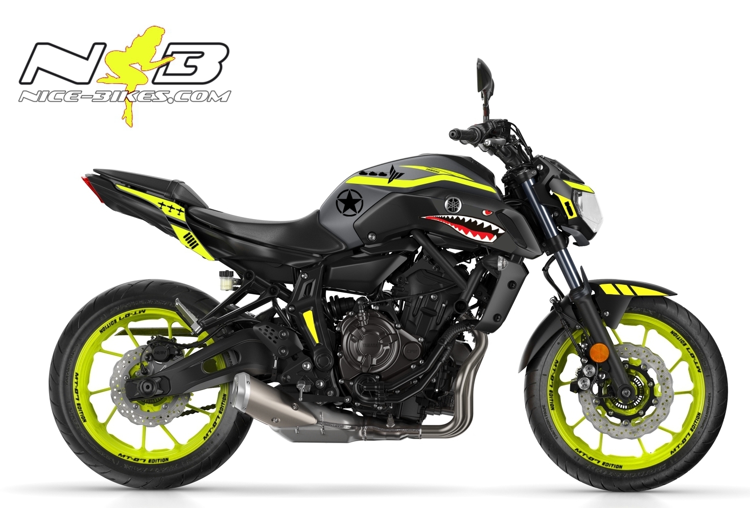 MT07 Night Fluo NOSE ART 2018/19 mit neon-gelben Design