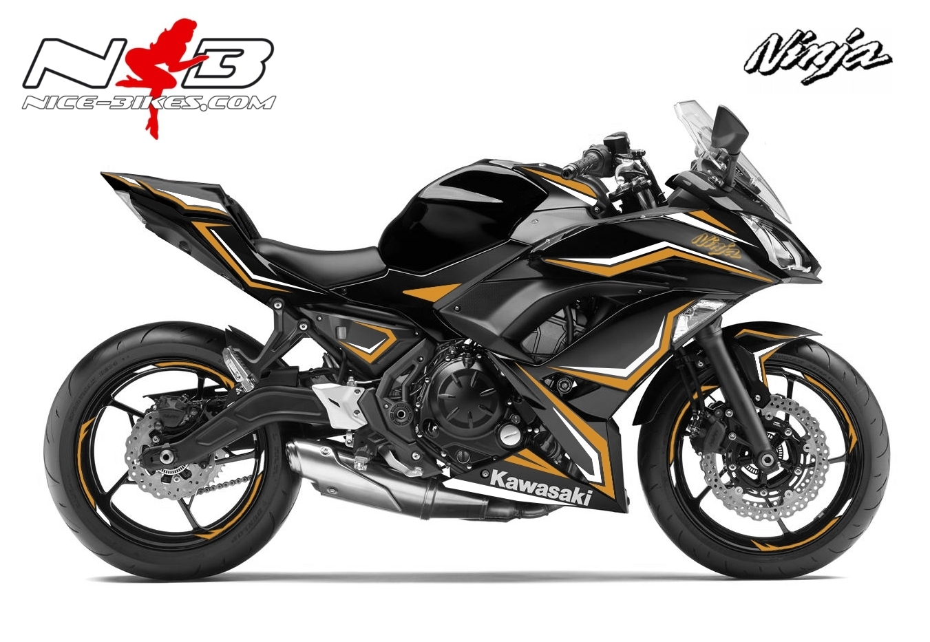 Ninja 650 Foliendekor gold/weiß für Schwarze Maschine