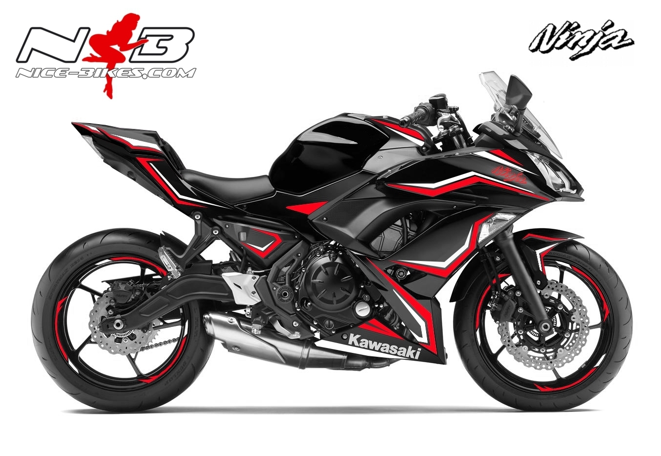 Ninja 650 Foliendekor rot/weiß für Schwarze Maschine