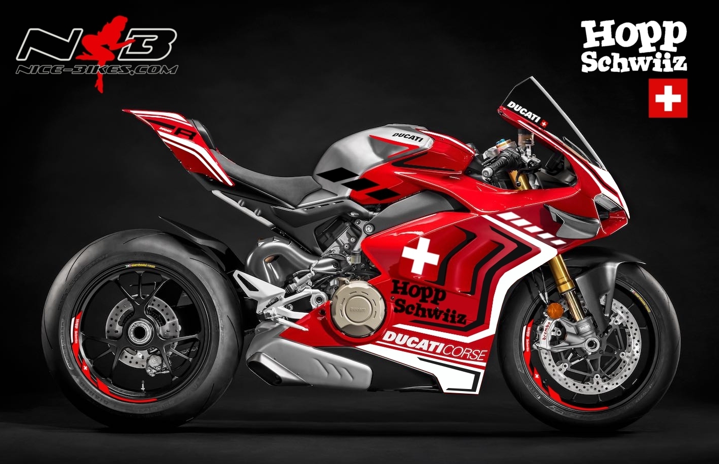 Panigale V4R Hopp Schwiiz auf roter Mashine