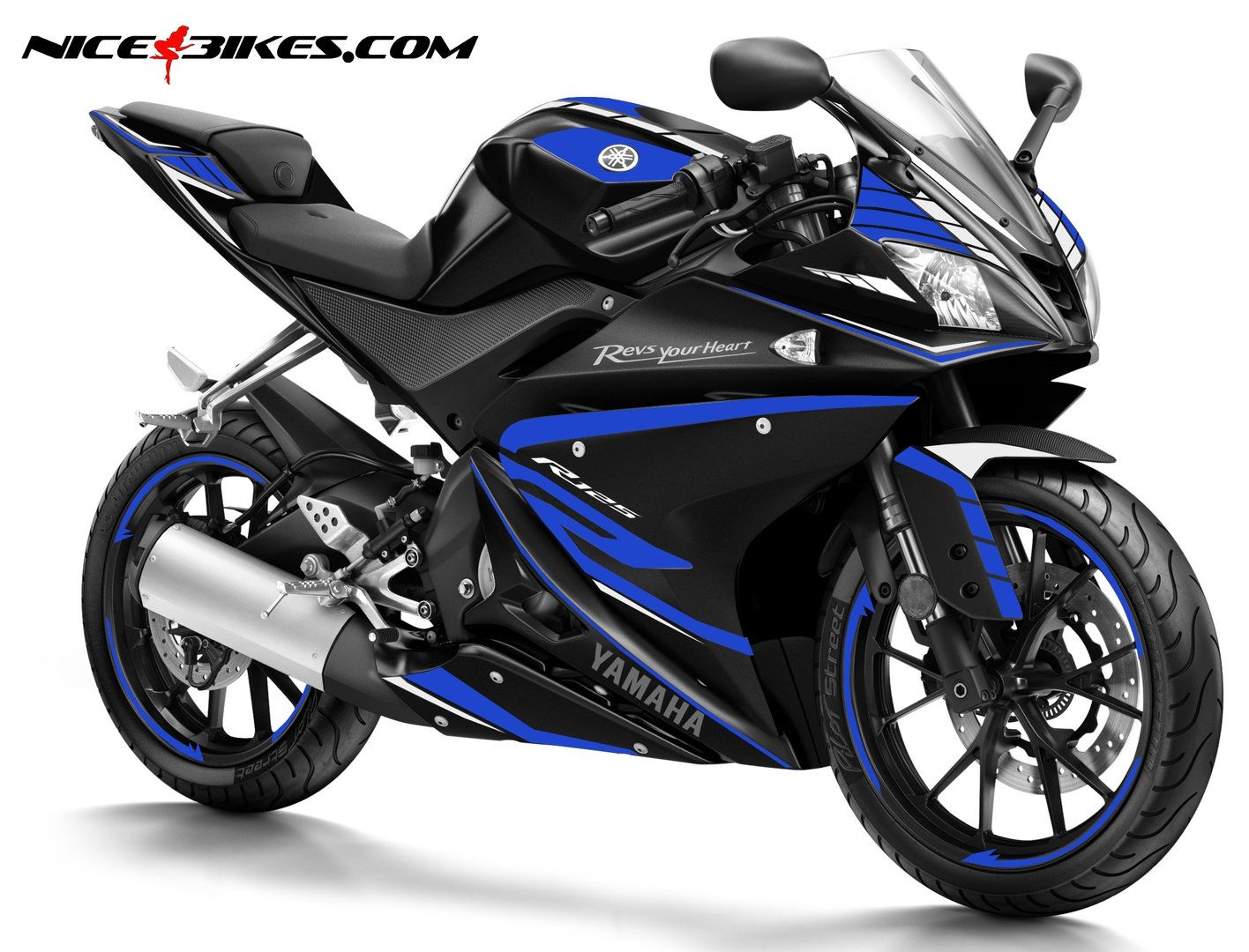 R125 Race Foliendekor blau auf schwarzer Maschine