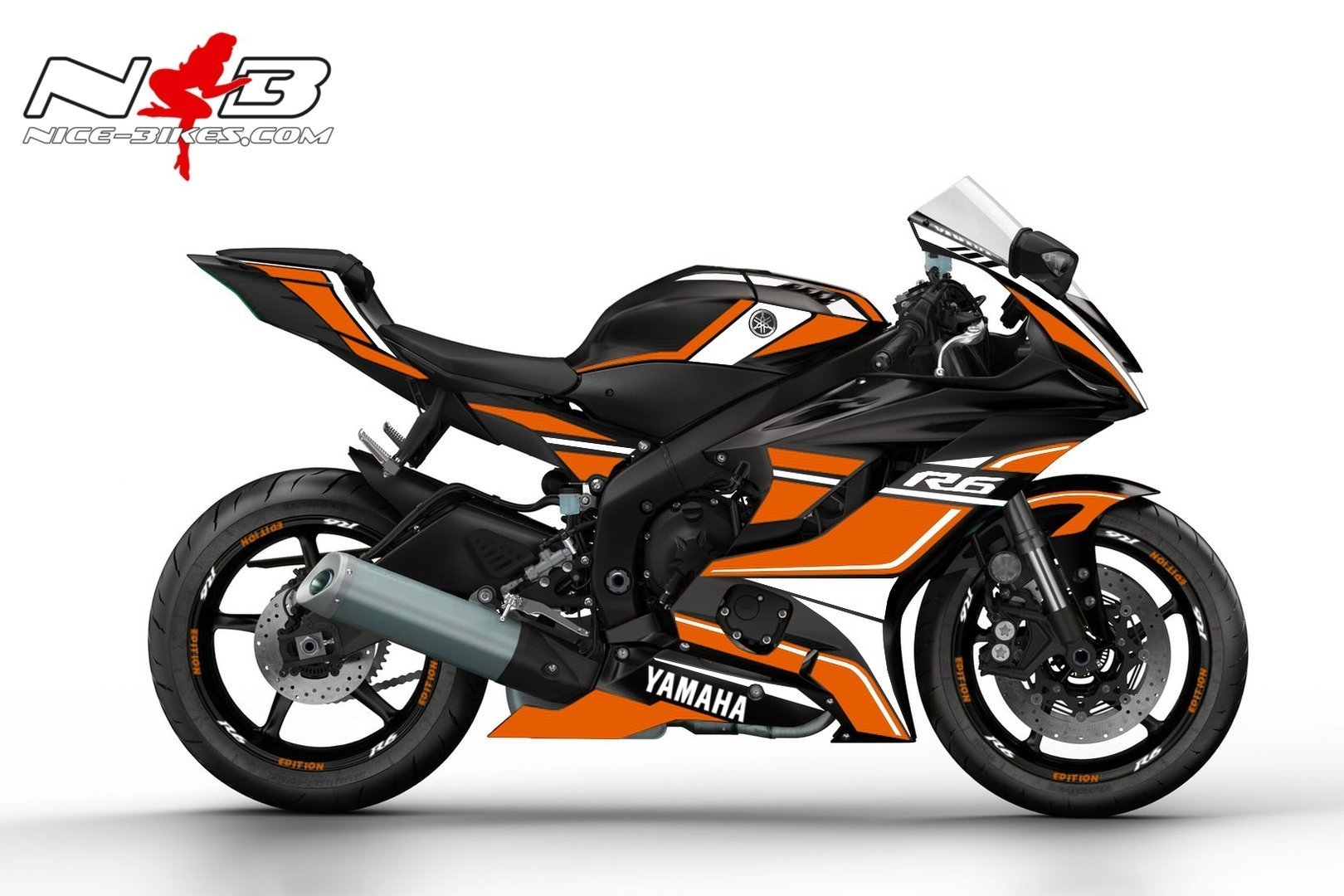 R6 Race Foliendekor orange auf schwarzer Maschine