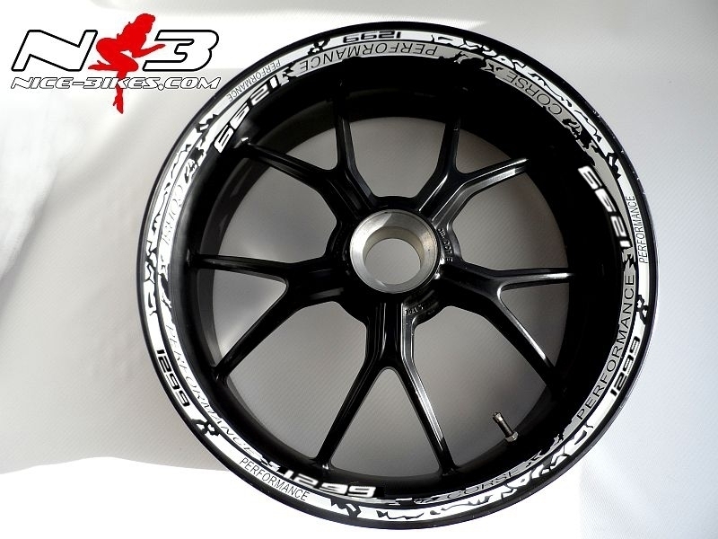 Felgendesign wie abgebildet bestehend aus Felgenbettaufkleber und Felgenrandaufkleber.