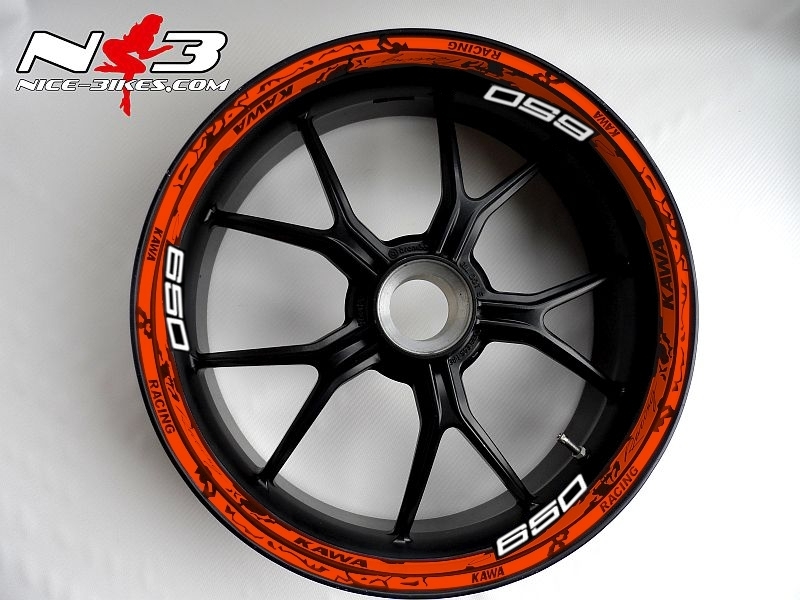 Felgendesign wie abgebildet bestehend aus Felgenbettaufkleber und Felgenrandaufkleber.