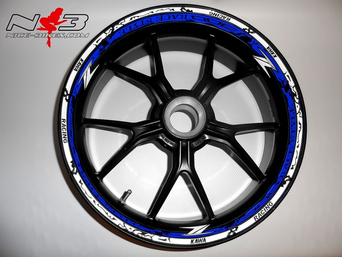 Felgendesign wie abgebildet bestehend aus Felgenbettaufkleber und Felgenrandaufkleber.