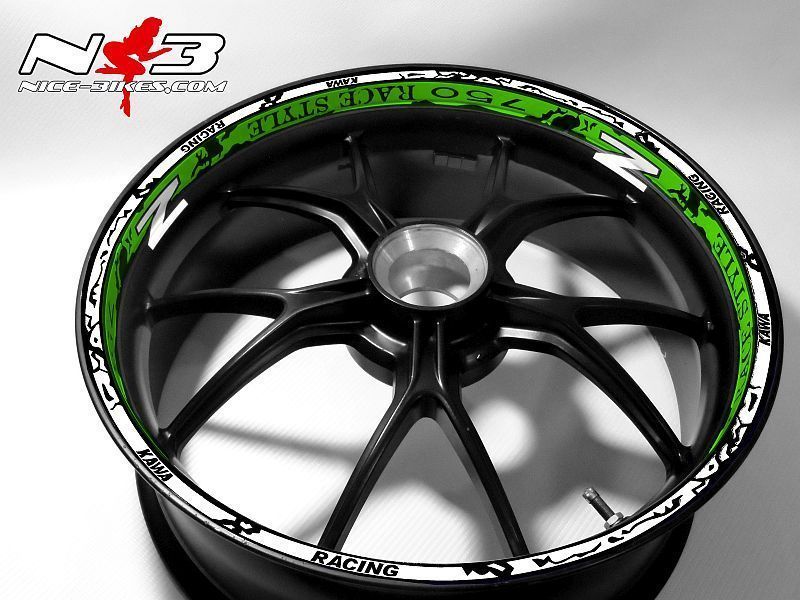 Felgendesign wie abgebildet bestehend aus Felgenbettaufkleber und Felgenrandaufkleber.