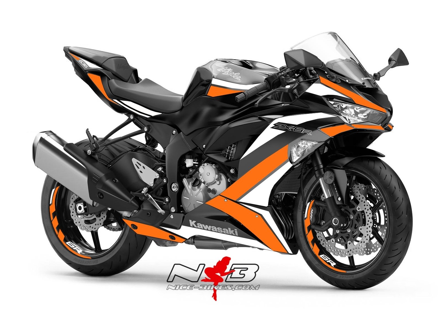 ZX6R Foliendekor orange für schwarzer Maschine