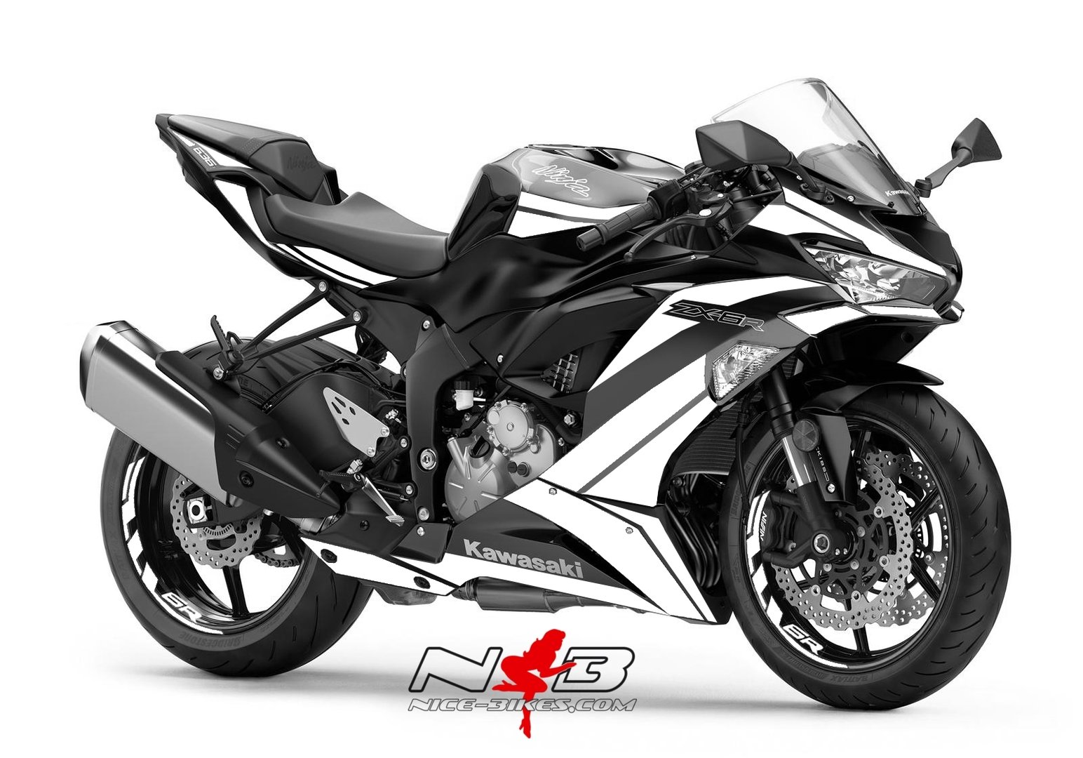 ZX6R Foliendekor weiß für schwarzer Maschine